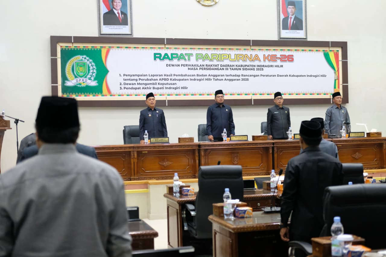 DPRD INHIL, TEMBILAHAN - Dewan Perwakilan Rakyat Daerah (DPRD) Kabupaten Indragiri Hilir menggelar Rapat Paripurna Ke-26 Masa Persidangan III Tahun Sidang 2025 pada Jumat, 22 Agustus 2025. Rapat berlangsung di Ruang Rapat Paripurna DPRD Kabupaten Indragiri Hilir, Jalan Soebrantas, Tembilahan, dimulai pukul 15.05 WIB dan dipimpin langsung oleh Wakil Ketua II DPRD Kabupaten Indragiri Hilir, Asmadi, SH.